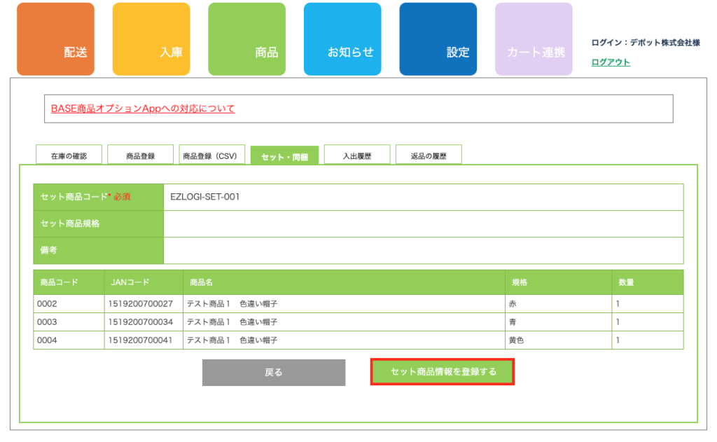 手順3:内容を確認して「セット商品情報を登録する」ボタンをクリック