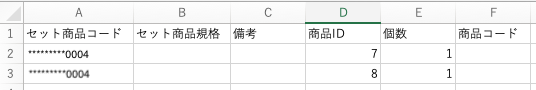 商品紐付けのためセット商品コード=カラーミー上の「型番」になっている必要があります。
