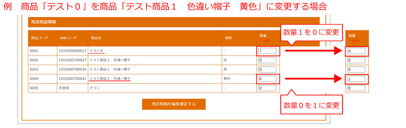 ⑥編集が完了したら、「発送情報を編集確定する」ボタンを押してください。