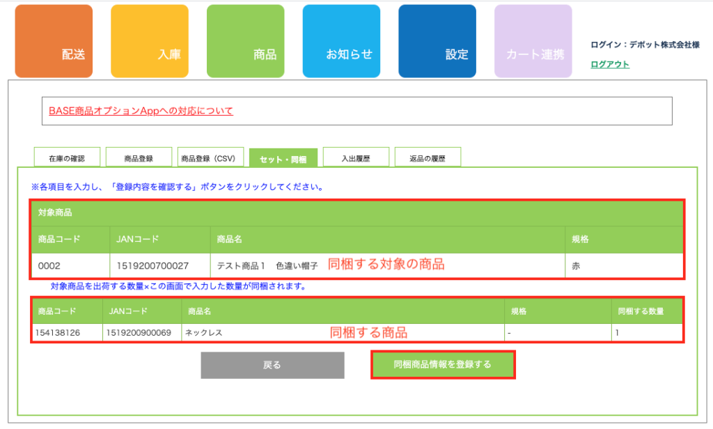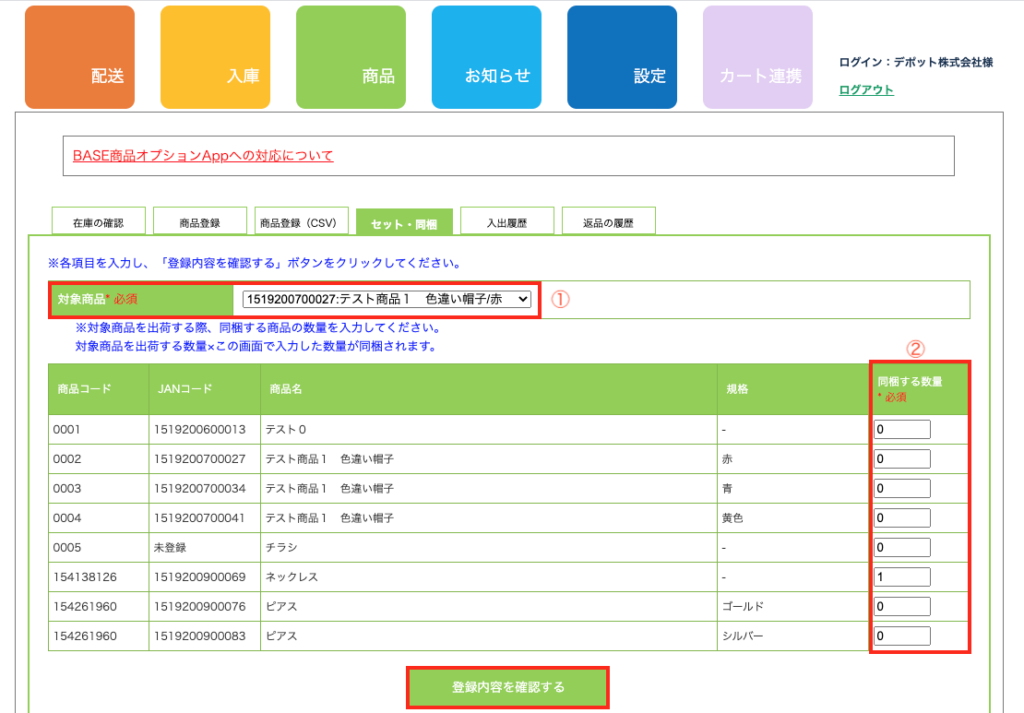 手順3:登録内容を確認の上、「同梱商品情報を登録する」ボタンをクリック
