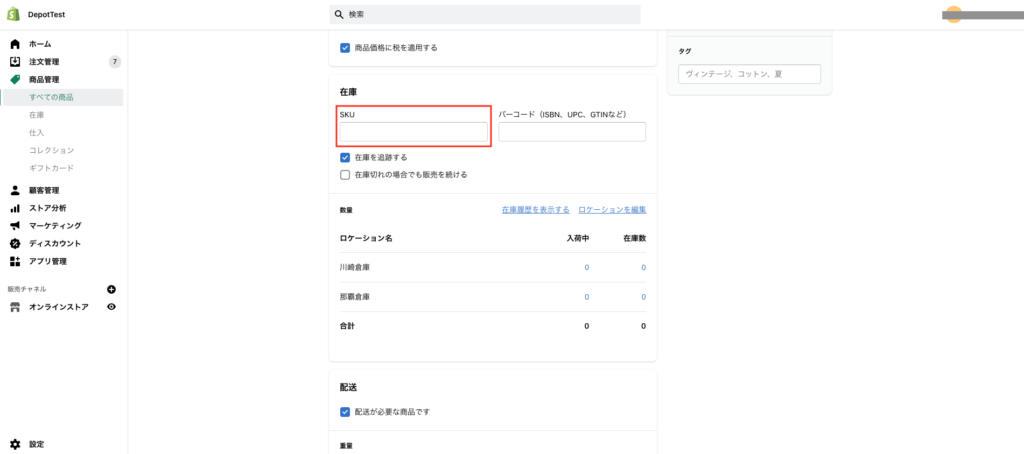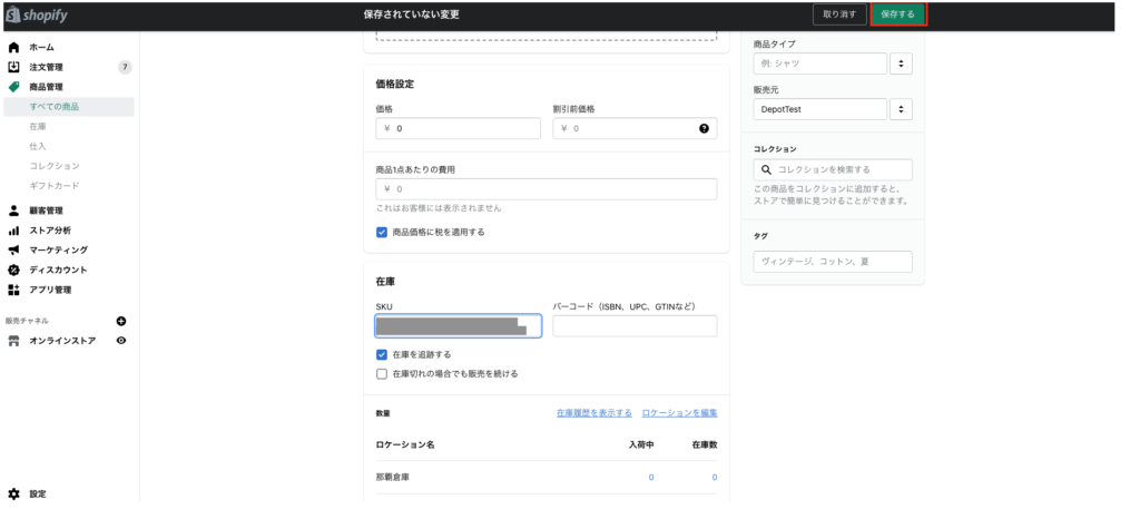 JANコードがついている商品はEZLOGIに商品登録を行う前に、必ずShopify上でJANコードのご設定をお願いします。
