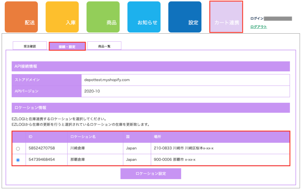 本ページは「カート連携」>「接続・設定」ページにて選択しているロケーションの商品在庫数を変更する手順となります。